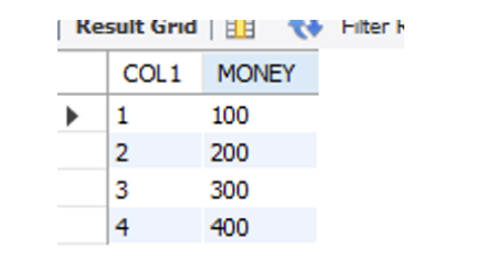 SELECT 2 AS COL1, 200 AS MONEY UNION