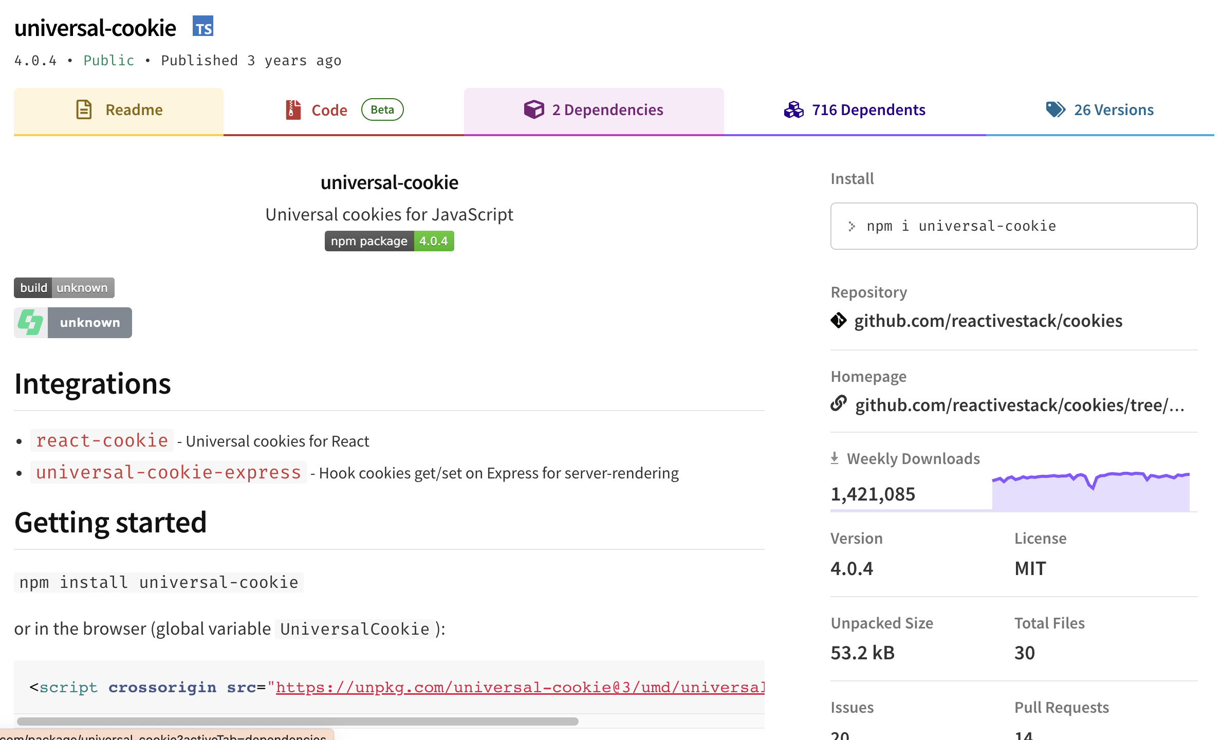 - [react-cookie](<https://www.npmjs.com/package/react-cookie>) - Universal cookies for React